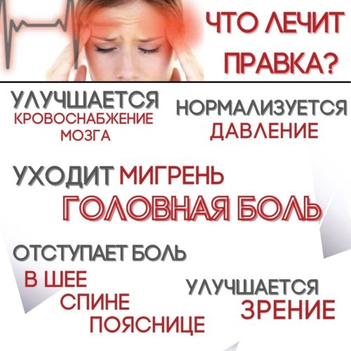 Правка — это закономерный, безопасный и запатентованный как способ лечения метод, который устраняет нейро-мышечное нарушение работы затылочного сустава. Гарантированно и доказано, при отсутствии индивидуальных патологий, нормализует управление короткими шейными мышцами на уровне нервной системы. Убирая тем самым первопричину множества симптомов и заболеваний, сформированных Вашим организмом. Правка на прямую не работает с симптомами, но разблокировав первое звено, вернув баланс черепу, сбросив ошибку на уровне управления, мы тем самым запускаем цепные реакции самовосстановления Вашего организма. Ваша нервная система сама начинает разгребать завалы накопленных проблем, при этом происходит довольно много положительных изменений.