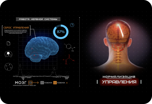 Мы не расслабляем мышцы, и не ставим позвонки на место - мы создаём ювелирный стресс на нервно-мышечную систему и вынуждаем её к саморегуляции, сбрасываем первичную ошибку на уровне управления. Всего после одной минуты воздействия, Ваши мышцы начинают правильно синхронно работать, запускается обратная цепная реакция самовосстановления организма. Подробнее о закономерностях метода, и более научными терминами, Вы можете ознакомиться в описании патента на изобретение или во время консультации у наших мастеров.